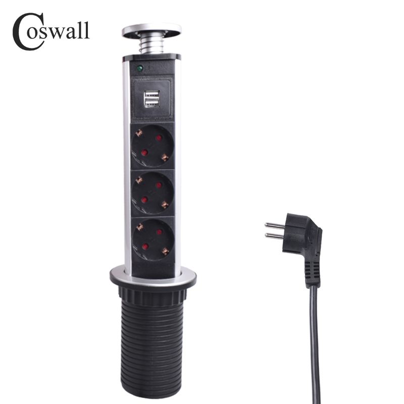 Großhandel Coswall 16a Pull Pop Up 3 Steckdose 2 Usb Ladeanschluss Küchentisch Desktop Steckdosen Einziehbare Arbeitsplatten Arbeitsplatte Eu Stecker